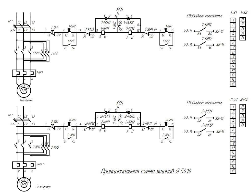 Двухфидерные реверсивные с автоматическим выключателем, кнопками и лампой на каждый фидер
