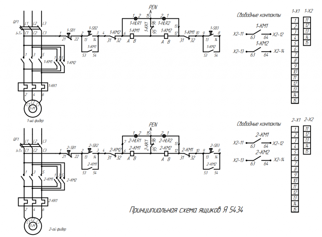 Двухфидерные реверсивные без автоматического выключателя с кнопками и лампой на каждый фидер